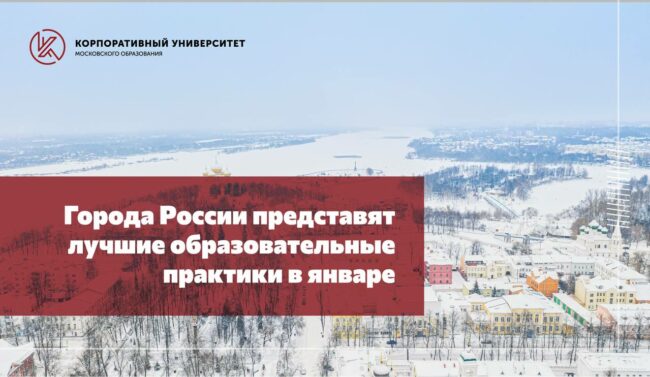 Участники проекта «Взаимообучение городов» продолжают делиться своими наработками на вебинарах, мастер-классах и skill-сессиях. Всего в январе будет проведено около 30 онлайн-встреч для управленческих команд и педагогов школ городов России.