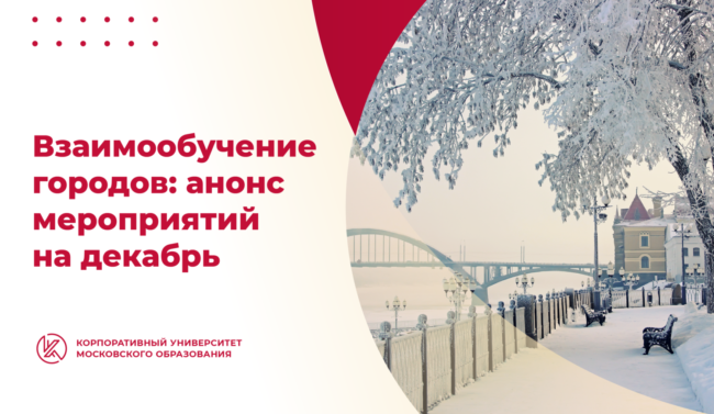 В декабре более 70 лекций, мастер-классов и практических вебинаров запланировано для российских педагогов, методистов и руководителей образовательных организаций – участников проекта «Взаимообучение городов». Эксперты сферы образования из 19 городов поделятся актуальными педагогическими разработками и практиками обучения.