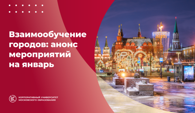 В январе более 57 лекций, мастер-классов и практических вебинаров запланировано для российских педагогов, методистов и руководителей образовательных организаций – участников проекта «Взаимообучение городов». Эксперты сферы образования из 22 городов поделятся актуальными педагогическими разработками и практиками обучения.