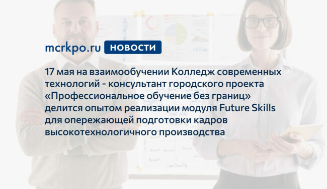 17 мая на взаимообучении Колледж современных технологий поделится опытом реализации программ профессионального обучения с модулем Future Skills.