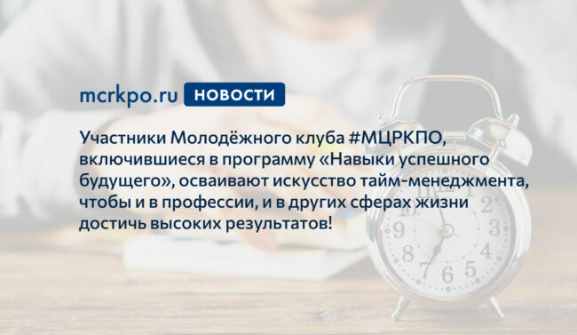 Молодёжный клуб #МЦРКПО в рамках программы «Навыки успешного будущего» провёл 21 января мастер-класс «Тайм-менеджмент».